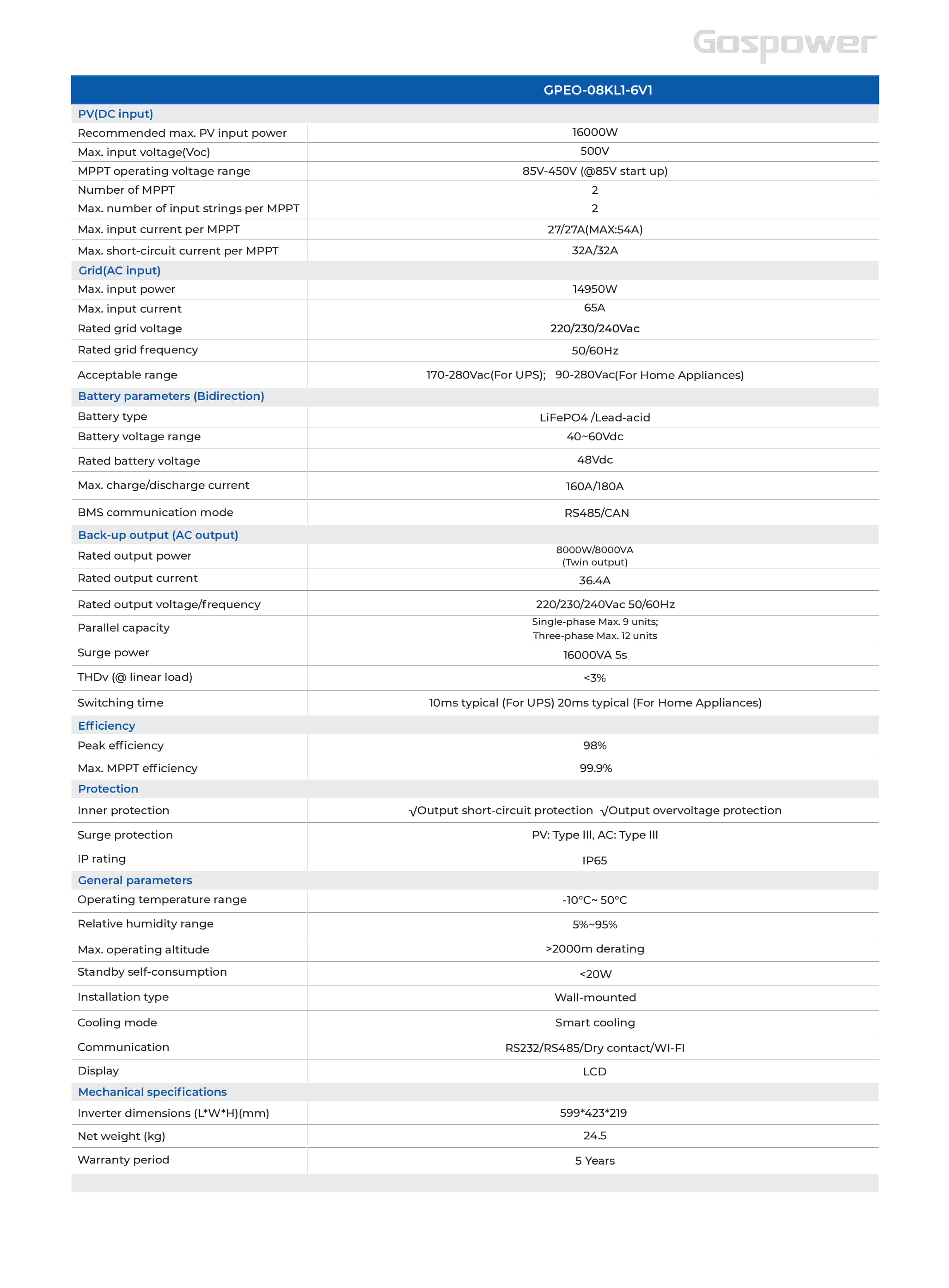 Gospower is a leading Energy &Electric company founded in 2006. We are world-renowned manufacturer and supplier of energy storage battery,hybrid and off-grid inverters and power supply products. 1. One-stop service 2. 18+ Years Experience 3. Strict QC inspection report for each order 4. Automatic production equipments, complete the order with quality and quantity guarantee, 99.9%+ good product yield rate 5. Engineers have extensive experience in installation solutions and can design installation solutions based on specific project details 6. Perfect after-sales service system 7. More than 10 overseas offices 8. Dispatch technicians for on-site maintenance and technical training, and provide marketing strategies and marketing materials |